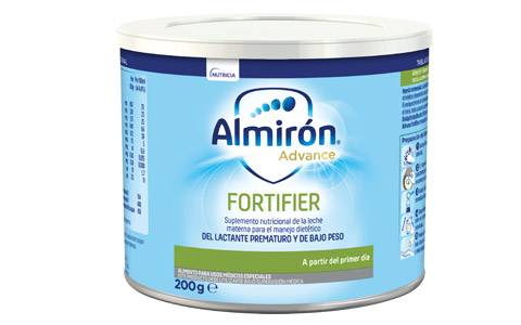 Almirón Advance Fortifier a partir del primer día es un suplemento diseñado para ser añadido a la leche materna. Ayuda a enriquecer el perfil nutricional para completar las necesidades nutricionales específicas de los lactantes prematuros o de bajo peso.