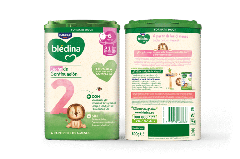 Lactosa (procedente de la LECHE), aceites vegetales (girasol alto oleico, coco, cánola y girasol), LECHE desnatada, Suero desmineralizado (de LECHE de vaca), Galactooligosacáridos (de LECHE de vaca), Concentrado de suero (de LECHE de vaca), Proteína de LECHE de vaca, Fosfato tricálcico, Aceite de PESCADO, Fructooligosacáridos, Cloruro de potasio, Citrato de sodio, Cloruro de colina, Fosfato ácido de magnesio, Lecitina de SOJA (emulgente), Ácido L-ascórbico, L-acorbato sódico, Citrato de potasio, Cloruro de magnesio, L-triptofano, Sulfato ferroso, L-carnitina, Sulfato de zinc, Palmitato de ascorbilo (antioxidante), D-pantotenato de calcio, Nicotinamida, Acetato de DL-alfa tocoferilo, Sulfato de cobre, Clorhidrato de tiamina DL-alfa tocoferol, Palmitato de retinilo, Riboflavina, Clorhidrato de piridoxina, Yoduro de potasio, Ácido pteroilmonoglutámico, Sulfato de manganeso, Selenito de sodio, Fitomenadiona, D-biotina, Colecalciferol, Cianocobalamina